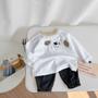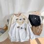 Mã:SB2410- bộ dài tay bé trai in cũn đính tai báo