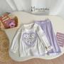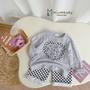 Mã:SB2417-bộ dài tay bé gái béo tim giữa ngực in mèo phối quần kẻ