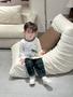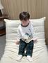 Mã:SB2419-bộ dài tay bé trai phối cổ in cún cõng chữ phối quần kẻ