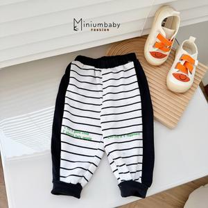 QD1621- quần dài phối kẻ in chữ đen thể thao